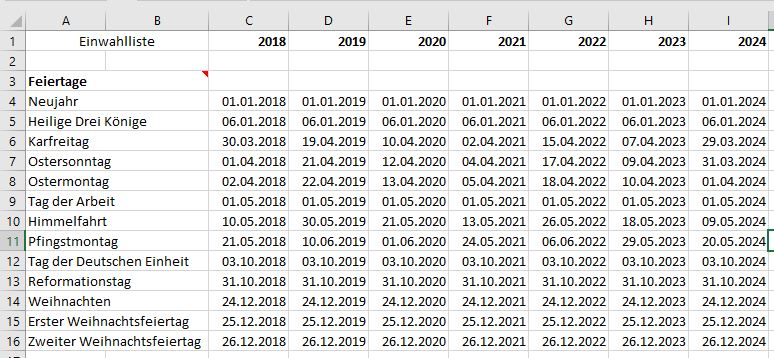 Excel Berechnung Der Flexiblen Feiertage Konschak Integrative