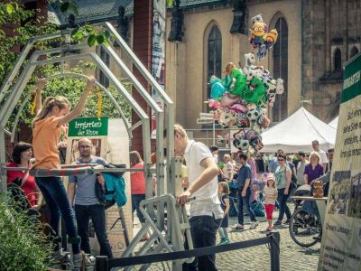 Zahlreiche eltern und großeltern besuchten mit ihren jüngsten bei wunderbarem wetter das programm rund um das rathaus in der inneren klosterstraße im rosenhof am roten turm und im stadthallenpark die stationen die verschiedene initiativen und akteure mit spiel spaß.
