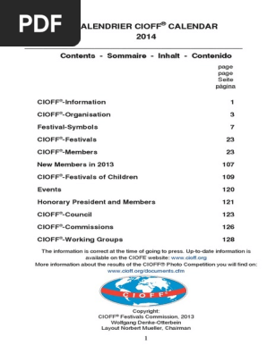 Cioff Festivals Calendar 2014 Cultural Heritage Museology